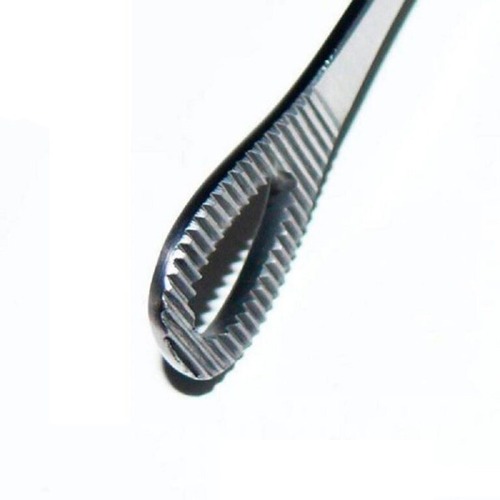 پنس پنبه گیر که در تصویر مشاهده می کنید دارای دهانه بیضی و دندانه دار و شیارهای افقی در قسمت بیضی شکل گیره می باشد.