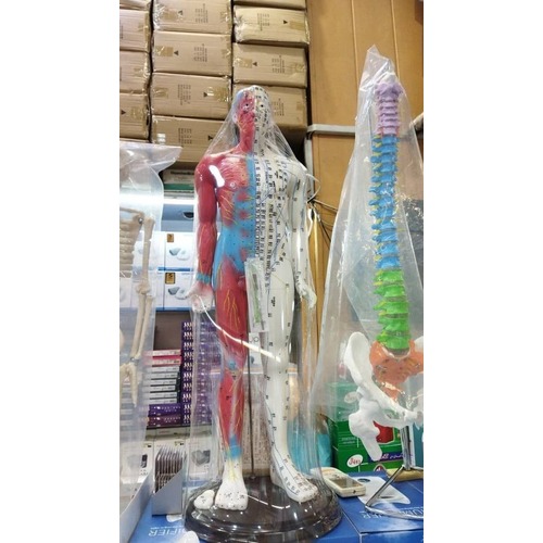 مولاژ طب سوزنی با عضلات - یک مانکن مرد 85 سانتی متری است و نقاط طب سوزنی را به طور کامل به نمایش می گذارد.هم چینی دارد هم انگلیسی و دارای نقاط مریدین است.