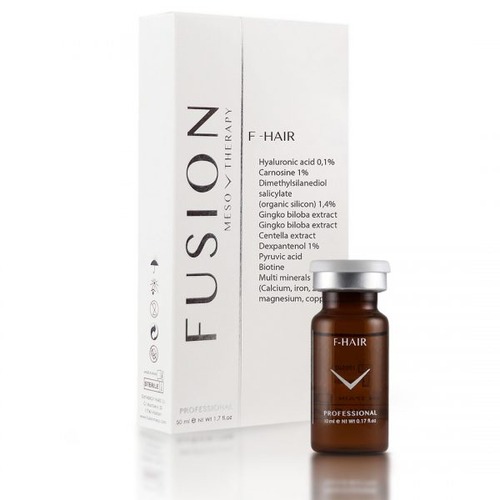 کوکتل رشد مو فیوژن F-HAIR محصولی تاثیر گذار و موثر برای جلوگیری از ریزش، درمان کم پشتی مو  احیای فولیکول های مو ،تحریک برای رشد مجدد مو و جلوگیری از نازک شدن مو می باشد. نتایج تاثیر این محلول مزوتراپی مو در کوتاه مدت قابل مشاهده است. با استفاده از  کوکتل موی فیوژن باعث افزایش گردش خون در رگ های پوست سر و موجب احیای فولیکول های مو  و افزایش  اکسیژن رسانی به پوست سر می شود.همچنین هیالورونیک اسید موجود در ترکیبات این کوکتل موجب به آبرسانی و افزایش رطوبت کف سر شده و شوره سر را از بین می برد.