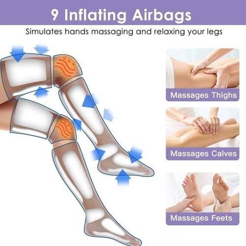 ماساژور پا برقی ایرکامپرشن (ماساژور فشار هوا) با فشرده سازی هوا در کیسه هوای بزرگ خود می تواند از پاها تا ران ها را ماساژ دهد تا خستگی را از بین برده و گردش خون را بهبود بخشد. این محصول برای افرادی که به مدت طولانی می ایستند یا می نشینند، ورزشکاران، افراد مسن بسیار مناسب است.